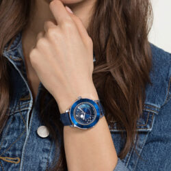 • Swarovski Octea Lux Moon Watch, Leather Strap, Dark Blue, Stainless Steel 5516305