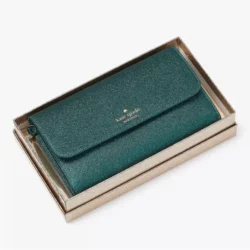 • kate spade Boxed Glimmer Glitter Medium Flap Wristlet Festive, Teal Green NWT